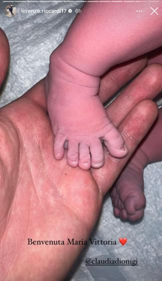 La bimba è venuta al mondo poche ore fa. Il neo papà ha pubblicato sul suo profilo Instagram una foto dei suoi piedini:
