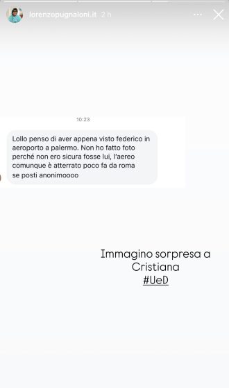 Stando ad una segnalazione riportata da Lorenzo Pugnaloni, invece, sembra proprio che Federico in queste ore sia sbarcato in Sicilia per fare una sorpresa a Cristiana e raggiungerla nel luogo in cui vive: