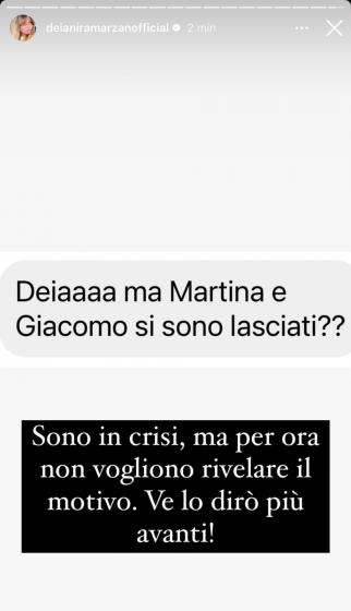 Abbiamo avuto modo di sentire privatamente Martina che ha smentito ogni voce di crisi, la sua relazione con Giacomo procede serenamente!