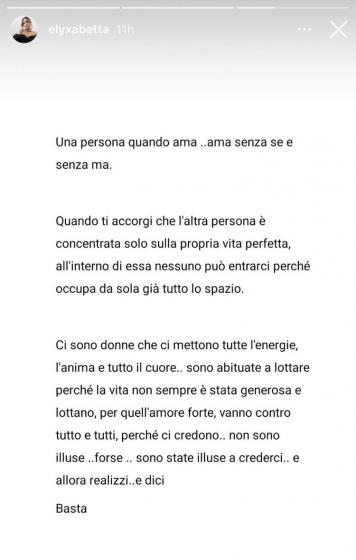 Oggi però la Simone è intervenuta sul proprio profilo Instagram con un messaggio che lascia intuire una crisi: