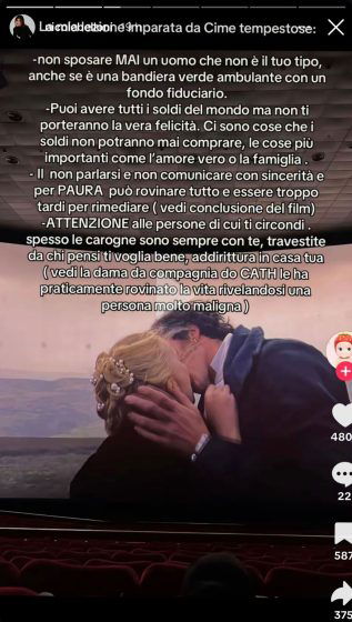 La Belloni durante la serata di ieri ha postato sulle sue storie Instagram una frase legata a Cime Tempestose che in molti hanno interpretato come riferita proprio a Flavio: