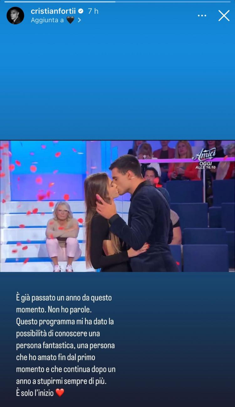 A gennaio dello scorso anno Cristian, al tempo tronista del dating show di Maria De Filippi, scelse di lasciare il programma con la corteggiatrice Valentina (QUI il racconto della sua scelta). A distanza di un anno, la relazione tra i due giovani prosegue a gonfie vele, e in occasione del loro primo anniversario Cristian e Valentina hanno condiviso sui social la loro felicità. L’ex tronista e l’ex corteggiatrice hanno si sono dedicati a vicenda messaggi romantici accompagnati dalle foto scattate in studio al momento della scelta.