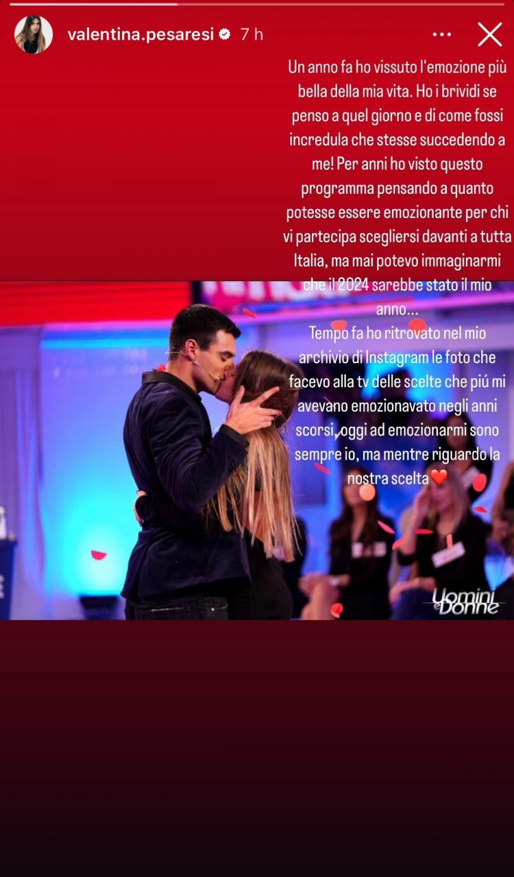 Un anno fa ho vissuto l’emozione più bella della mia vita. Ho i brividi se penso a quel giorno e di come fossi incredula che stesse succedendo a me! Per anni ho visto questo programma pensando a quanto potesse essere emozionante per chi vi partecipa scegliersi davanti a tutta Italia, ma mai potevo immaginarmi che il 2024 sarebbe stato il mio anno…Tempo fa ho ritrovato nel mio archivio di Instagram le foto che facevo alla tv delle scelte che più mi avevano emozionato negli anni scorsi. Oggi ad emozionarmi sono sempre io, ma mentre riguardo la nostra scelta.
