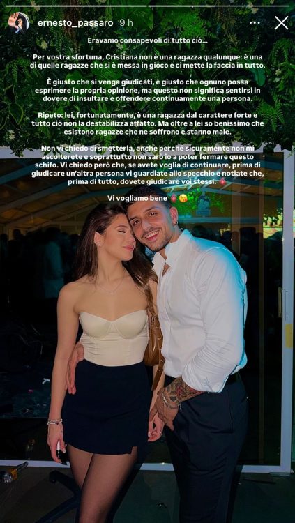 E poi, anche il fidanzato Ernesto è intervenuto per proteggere la sua bella e ha ripetuto più o meno lo stesso concetto: