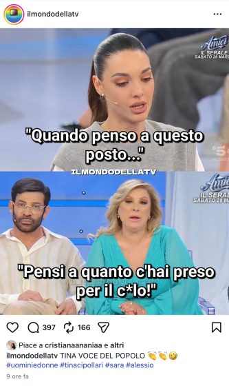 Mentre Sara stava facendo il consueto discorso di commiato e stava accennando a cosa le veniva in mente ogni volta che pensava allo studio di Uomini e Donne, Tina è intervenuta a gamba tesa dicendo: