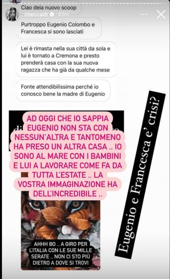 Subito dopo, a fare rumore la segnalazione di Deianira Marzano, in cui una follower ha insinuato che Eugenio si trovasse in un’altra città pronto a prendere una casa con la nuova compagna: