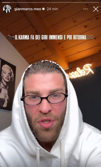 Anche un altro corteggiatore, sempre della tronista Sorrentino, ha voluto commentare la vicenda ed ha postato una foto con su scritto: Il karma fa dei giri immensi e poi ritorna. Stiamo parlando di Gianmarco Meo.