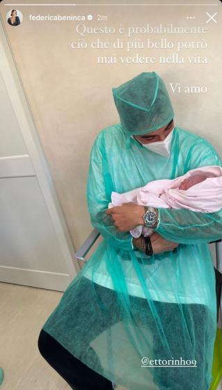 Erano giorni che Federica aspettava con ansia di partorire per poterla ammirare e finalmente è nata. Come aveva già annunciato, si tratta di una bambina il cui nome è Arianna.