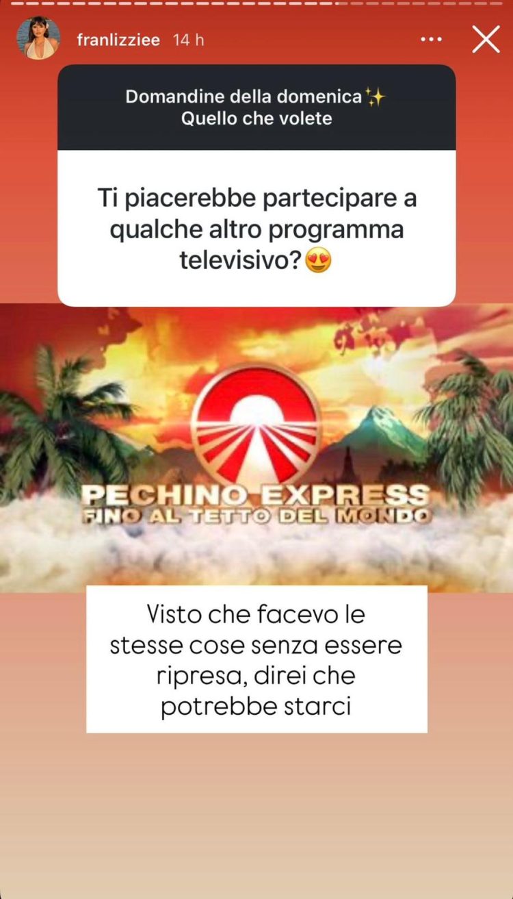 Poi ha confessato che le piacerebbe partecipare a Pechino Express: