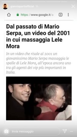 Questo però non è bastato per placare i dissidi tra loro e a qualche giorno di distanza da tutte le polemiche, l’opinionista ha pubblicato su Instagram questo screenshot di un articolo in cui si vede Mario massaggiare le spalle di Lele Mora. Un colpo basso che non ha fatto certo piacere a Serpa, che su Instagram non ha tardato a rispondere per le rime alla frecciatina di Gianni: