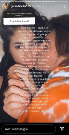 Sembra, però, che questa volta i due sia rimasti in buonissimi rapporti e desiderino il meglio l’uno per l’altra. L’ex tronista, intervistato da Vanity Fair durante la Mostra del Cinema di Venezia, aveva speso parole bellissime per Giulia, cosa che stasera ha fatto anche l’influencer, la quale – concedendosi un momento a cuore aperto con i fan – ha deciso di chiarire una volta per tutte il suo rapporto con Andrea: “Questa volta abbiamo voglia di proteggerci di più, per quanto possibile. Non abbiamo nascosto che da due mesi o poco più non stiamo più insieme e non viviamo sotto lo stesso tetto.. lo vedete, l’ho detto. Ho condiviso con voi quasi tutto di questa relazione incredibile. E’ bene che sappiate anche le distanze e il tempo non cambieranno ma alcuni legami. Andre è e resterà una delle persone più importanti della mia vita. Ci siamo l’uno per l’altra senza odio né rancori, senza colpe o cose simili. Stiamo cercando solo di vivere la nostra vita così come viene augurandoci il meglio insieme o separati che sia”.