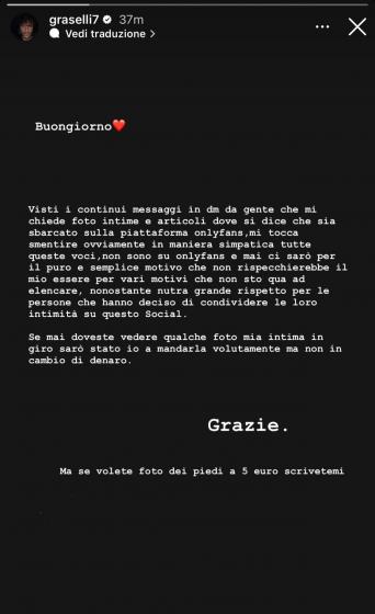 Buongiorno, visti i continui messaggi in direct da gente che mi chiede foto intime e articoli dove si dice che io sia sbarcato sulla piattaforma 0nlyfans, mi tocca smentire ovviamente in maniera simpatica tutte queste voci. Non sono su 0nlyfans e mai ci sarò per il puro e semplice motivo che non rispecchierebbe il mio modo essere per vari motivi che non sto qua a elencare. Nonostante nutra grande rispetto per le persone che hanno deciso di condividere le loro intimità su questo social. Se mai doveste vedere qualche foto mia intima in giro sarò stato io a mandarla volutamente ma non in cambio di denaro.