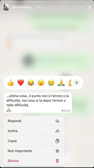 Proprio in riferimento a ciò, Bakkour nelle scorse ore ha pubblicato nelle sue storie Instagram quella che sembra essere una frecciatina a quanto accaduto con Sara nel corso degli ultimi giorni.