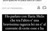 Ho parlato con Ilaria Melis che tra l’altro è una bravissima ragazza, lei non è al corrente di certe cose e ha smentito ma io so da una persona vicina a Joele che le intenzioni sono di non continuare la storia. Sono sicura che finirà presto.