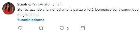 In conclusione, giusto due parole sul siparietto dedicato a Giorgio Manetti che ha aperto la puntata di oggi. Praticamente è venuto a galla che il Gabbiano fuori da quello studio dedica il suo tempo a svariate altre donne, e l’unico che ha mostrato un minimo di fastidio a riguardo è stato il prode Gianni Sperti, che ha prontamente rimarcato l’aneddoto “perché le donne che chiameranno per te dovranno sapere“.