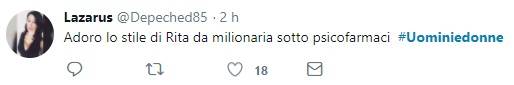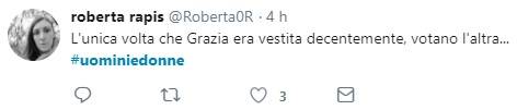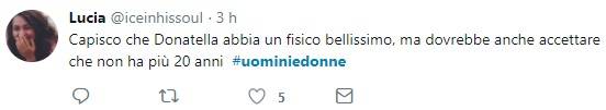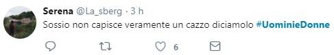 A parte il disgusto che m’è venuto spontaneo all’idea di questo tizio – oggi nervosetto e paonazzo come ogni volta che gli vengono mosse delle critiche – che s’apparta nei vicoli di ogni città d’Italia con signorine varie ed eventuali, per poi arrivare in studio a fingere interesse per quelle sciroccate che ancora chiamano in redazione per lui (e a stizzirsi se poi osano chiudere la frequentazione prima che lo faccia lui, brizzolato maschio alpha…) io dico solo che, sia nel Trono over che nel Trono classico, c’è gente che è stata cacciata a pedate nel culo PER MOLTO MENO.