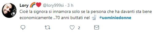 E la scusa dei 70 anni non regge. Mia mamma ne ha 68, mio papà 78, nella vita hanno fatto i sacrifici VERI (perché non avevano dei genitori “che non mi hanno fatto mai mancare nulla” come ha rivelato oggi Angela) e ad oggi campano con le loro normalissime pensioni da operai. Di visite mediche ne fanno parecchie, che la salute è importante, ed in crociera non ci sono mai andati, ma quando si guardano negli occhi hanno la stessa luce di 35 anni fa. E non c’è ricchezza più grande di quell’amore lì, quello che non si ferma alla prima ‘transazione rifiutata’.