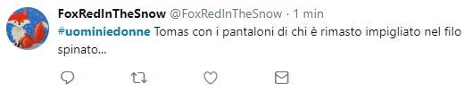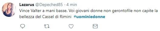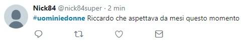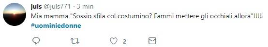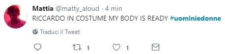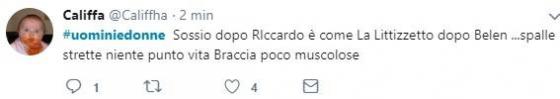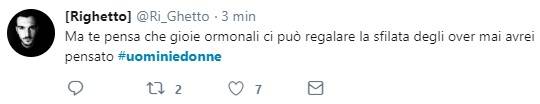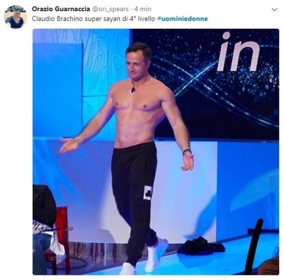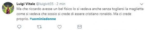 Spazio quindi alle sfilate maschili. E’ stato innanzitutto il turno della sfida tra il #ReLeone e Riccardo Guarnieri sul tema “Mi sento in forma“. E il neo fidanzato di Ida Platano per la prima volta a torso nudo…