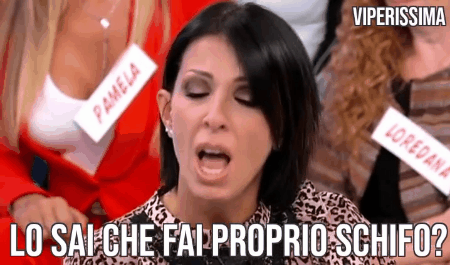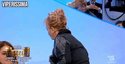 La gif anzi non è molto rappresentativa, è più efficace il momento successivo a quello ripreso dal gif, quello in cui Vale, con le vene del collo uscite di fuori, la voce dell’incredibile Hulk e gli occhi fuori dalle orbite, è andata quasi ad azzuffarsi con cavaliere di turno (ciao Pino, pace all’anima tua). Lì mamma Vale era proprio uguale alla piccola Muriel!