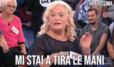 A fine puntata c’era gente che si azzuffava con altra gente, una tizia non meglio identificata e piazzata in quarta fila che inveiva contro Sebastiano il siculo, Nino Castanotto sempre in mezzo anche quando non c’entra una mazza, David che polemizzava con un altro tizio non meglio identificato (quello che a oltre quarant’anni vive ancora nella dimensione liceale e pensa che una persona possa interessarsi solo a chi esteticamente corrisponde esattamente ai suoi canoni), insomma, io ero già sfinita da questa puntata alle 14.46, a seguire la caciara finale ci ho proprio rinunciato.
