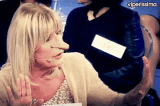 Io mi faccio comunque andar bene tutto perché parto sempre dall’assunto che sia tutta una trama preconfezionata che questi giovani sessantenni mettono in scena per far passare dei pomeriggi di trastullo a noi affamati di tv spazzatura che, vera o finta che sia non ci importa, purché sia di livello così basso da farci sentire, nel confronto, persone migliori, l’importante è non superare i confini e non pensare di farci fessi davvero perché poi quando si esagera è il pubblico ad aprire la botola, e se la botola la apre il pubblico anche la somma Queen Mary si deve regolare di conseguenza.