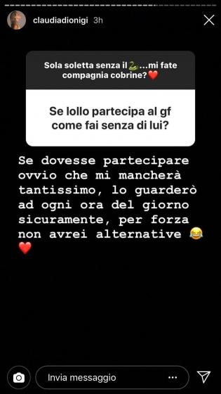 Questa convivenza però potrebbe interrompersi nei prossimi mesi! Lorenzo infatti sembra essere uno dei nuovi papabili concorrenti della quarta edizione del Grande Fratello Vip, e se da un lato lui nei mesi scorsi aveva commentato la notizia con un sintetico ‘vedremo’, questa volta è Claudia a mostrare tutto il sostegno al fidanzato nel caso in cui dovesse varcare la porta rossa più nota di Canale 5: