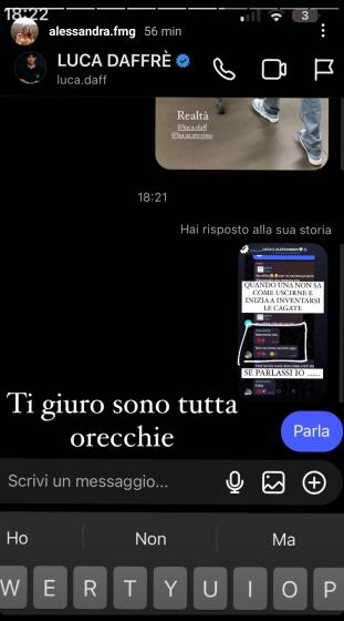 Successivamente, Alessandra ha replicato pubblicando un altro screen di una chat con Luca su Instagram in cui lo invitava a parlare: