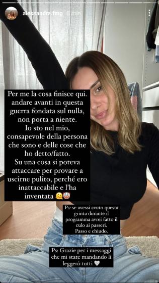 Ed ecco infine la sua versione dei fatti definitiva, con cui Alessandra vuole archiviare la questione: