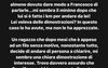 Penso sinceramente che lei avrebbe almeno dovuto dare modo a Francesco di parlarle…Mi sembra il minimo dopo che lui si è fatto i km per andare da lei! Lei voleva delle dimostrazioni? In questo caso le ha avute, ma non le ha apprezzate. Un ragazzo che dopo mesi è appeso ad un filo senza motivo, nonostante tutto, decide di andare di persona a chiarire, mi sembra una chiara dimostrazione di interesse. Trovo davvero assurdo che Drusilla non abbia apprezzato il gesto e l’abbia fatto andare via così. Davvero poco elegante e irrispettoso per una Gucci. A questo punto inizio a pensare che lei non lo ami più ma non abbia le palle per dirglielo in faccia. Per questo ha paura del confronto e cerca di insabbiare tutto tirando in mezzo me.