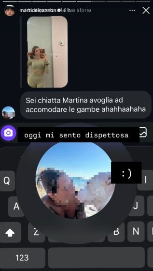 Nelle scorse ore l’ex tronista ha postato nelle sue storie Instagram un selfie allo specchio in completo da palestra e ha ricevuto un commento decisamente poco carino da parte di un hater che le ha scritto “Sei chiatta Martina avoglia ad accomodare le gambe”.
