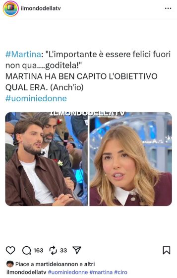 Ma Ciro non è stato l’unico bersaglio della De Ioannon sui social: Martina, infatti, che durante il confronto ha ricevuto numerose critiche anche da Tina Cipollari e Gianni Sperti, una volta uscita dallo studio ha subito rimosso il follow su Instagram ad entrambi gli opinionisti.