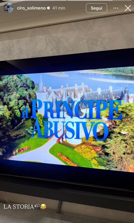 Nelle ultime ore il Solimeno ha postato una storia che ritrae lo schermo della TV con in primo piano il titolo del film Il principe abusivo che molti hanno interpretato come una frecciata nei confronti di Martina.
