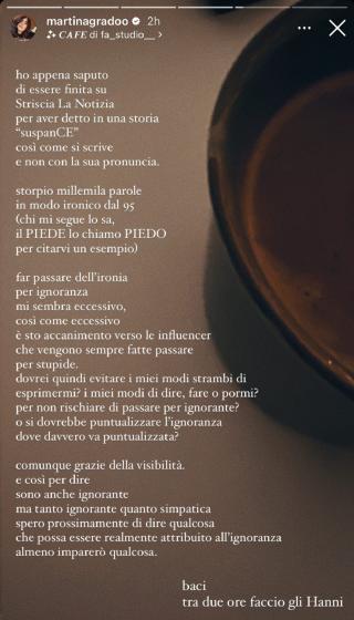 Come ha spiegato Martina stessa, la parola ‘suspance’ è stata pronunciata errata volontariamente in maniera scherzosa, e per dimostrarlo ha postato un video sul suo profilo Instagram: