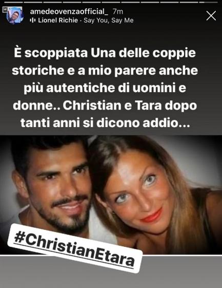 Dopo varie vicissitudini, finalmente il 30 agosto del 2016 Cristian e Tara sono diventati marito e moglie e a distanza di quasi quattro anni a quanto pare i rapporti tra i due si sarebbero incrinati; a dare l’indiscrezione è stato Amedeo Venza sul suo profilo Instagram: