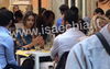 Ciao Isa e Chia, eccovi le foto di Ida e Riccardo oggi da Ginger a Roma. Inizialmente, appena seduti, mi sembravano un po’ tesi: lei mostrava a lui il contenuto del suo telefono (ho notato degli screen di una diretta Instagram) e Riccardo mi sembrava un po’ contrariato. Poi nel corso del pranzo si sono rasserenati e hanno iniziato a mangiare tranquillamente. Devo dire che sembravano più rilassati anche perché molte persone si fermavano per salutarli o per chiedere foto. Non ho visto particolari gesti d’affetto tra loro, del resto erano l’uno di fronte all’altra, e sono rimasta circa un’oretta dal loro arrivo prima di andare via.