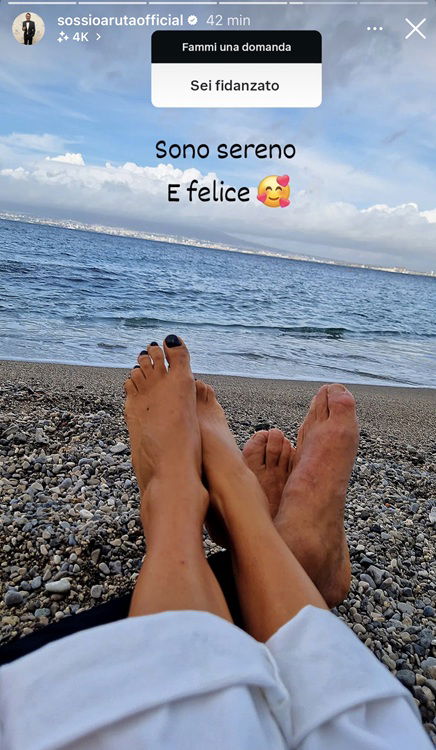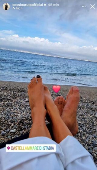 Infatti in una storia postata su Instagram Aruta appare in dolce compagnia in riva al mare.