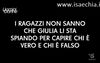 E se Alessandro Zarino e Sara Tozzi per ora sono ancora sul chi va là, oggi non mi è dispiaciuta nemmeno Giulia Quattrociocche. O meglio, l’idea dell’esterna trabocchetto a quei bambacioni dei corteggiatori gliela quoto in toto, specie se viene da una tronista molto poco tronista come lei, che il dubbio che dei bellocci depilati, palestrati e color arancionelampada possano prenderla per i fondelli è comprensibile che lo abbia.