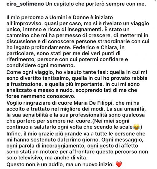 Di seguito invece le parole dell’ex corteggiatore, come didascalia ad una serie di immagini che riassumono alla perfezione il suo percorso: