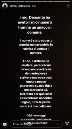 Tartaglione questa mattina è tornato sull’argomento, condividendo l’ennesima Instagram Story sulla vicenda: