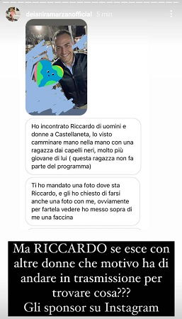 Ma Riccardo se esce con altre donne che motivo ha di andare in trasmissione per trovare cosa??? Gli sponsor su Instagram.