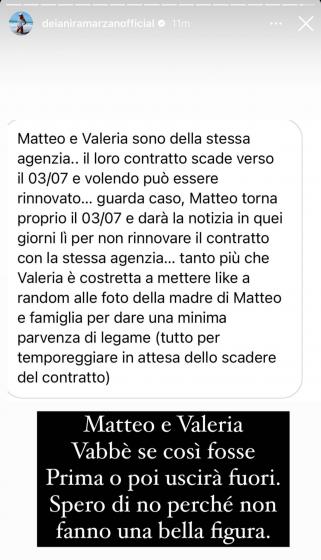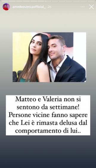 Come riportato da Amedeo Venza, secondo fonti vicine alla coppia, i due non si sentirebbero da settimane. Sembrerebbe infatti che Valeria sia rimasta delusa dal comportamento di Matteo.