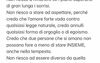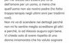 Credo che due persone che si amano non possano fare a meno di stare INSIEME, anche nella tempesta. Non riesco ad essere diversa da quella che sono, né vorrei cambiarmi, solo migliorarmi per diventare una donna felice. Fin quando le discoteche saranno più importanti di me, io non saprò rimanere. Ho giudicato ed offeso la vita di Alessio, in un momento di forte rabbia l’ho bloccato su qualsiasi tecnologia, presa dall’impulso, dal dolore, dalla disperazione. Ho detto cose che non pensavo pur di gridare aiuto, nel mio modo più sbagliato. Io ho sbagliato questo, sicuramente. Ho anche sbagliato a rimanere più del dovuto, in silenzio, da più di 10 giorni. “Quelle foto” sono state una goccia in mezzo ad un mare pieno di incomprensione, intolleranza, nervosismo, competizione, non amore. Siamo due persone totalmente opposte, con trascorsi e modi di vivere troppo diversi.