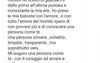 A me hanno sempre detto che non si può amare una persona dopo due mesi. Ma mia madre mi ha amato dal primo giorno. Mi hanno sempre detto che soffrire aiuta a crescere, ma mai che poi cresci soffrendo. Mi hanno anche detto che l’amore a distanza non è possibile, perché due persone lontane non possono amarsi. Io ho sempre creduto il contrario perché l’amore non sta negli occhi, ma nel cuore. Mi han detto che bisogna rispondere colpo su colpo, che se tratti come ti trattano non sbagli, ma il fuoco non si spegne con il fuoco ma con l’acqua.