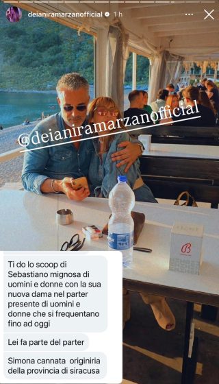 A conferma di ciò, una paparazzata riportata dall’esperta di gossip Deianira Marzano, che nelle sue storie Instagram ha postato la segnalazione di un utente che ha affermato di averli visti insieme allegando anche un’immagine che li ritrae insieme sorridenti e ad abbracciati in un bar.