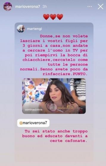 A quel punto Mario ha ricondiviso questo messaggio della sorella, appoggiando quindi pubblicamente le sue parole contro la Caccavalle. Ecco l’immagine tratta dal sito Il Vicolo delle News: