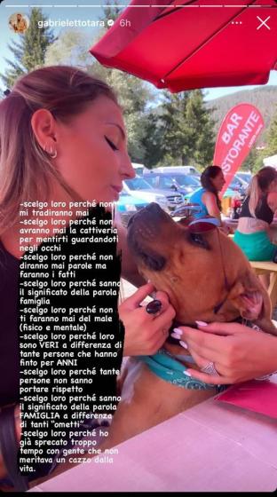 Da qualche anno Tara Gabrieletto ha abbandonato il mondo dello spettacolo per dedicarsi ai nostri amici a quattro zampe. Proprio qualche ora fa, ha pubblicato un duro attacco attraverso una storia sul suo profilo Instagram. La donna, nello scrivere i motivi per cui preferisce gli animali, si è sfogata contro qualcuno che “ha finto per anni e non sa portare rispetto”: