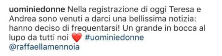 Qualcosa però in questi ultimi giorni deve essere cambiato tra loro, perché qualche istante fa sono stati i social ufficiali del programma ad annunciare a gran voce che Teresa e Andrea – ospiti della registrazione odierna del Trono Classico – hanno deciso di dare una nuova possibilità alla loro conoscenza: