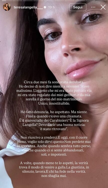 Poi Teresa è intervenuta tramite storie parlate raccontando quanto le è accaduto: