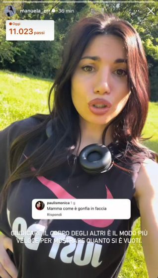 Manuela era a Villa Doria Pamphili e stava mostrando di aver preso molto seriamente l’obbiettivo di dimagrire, ma naturalmente era infastidita dai continui appunti riguardo al suo aspetto fisico e soprattutto ha spiegato quanto sia inutile rivolgere alcune osservazioni a riguardo.