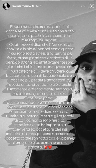 Quando era in trasmissione infatti Lavina ne ha parlato spesso e anche degli attacchi di panico, di cui purtroppo soffriva. A questo proposito ha voluto dire qualcosa ai suoi follower con una storia social: